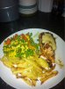 Dinner - Hunters chicken (6 - 4 for 30g reduced fat cheese and 2 for 2 tbls of BBQ sauce), mixed veg, and slimming world chips. ketchup (1)