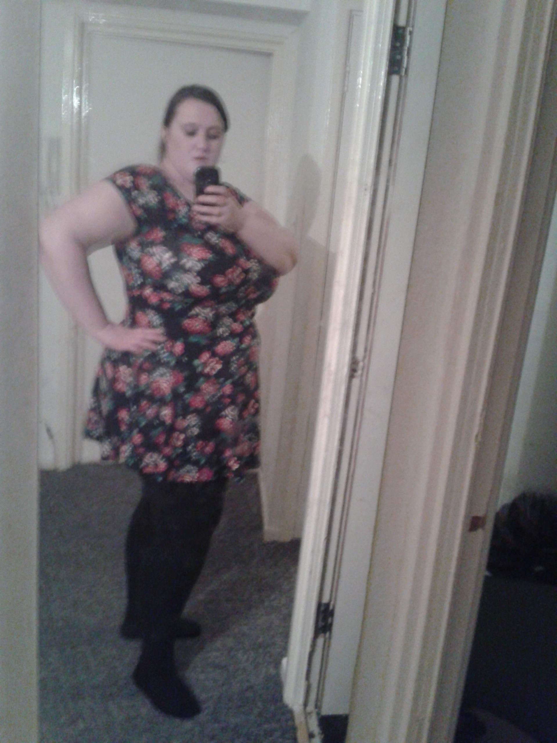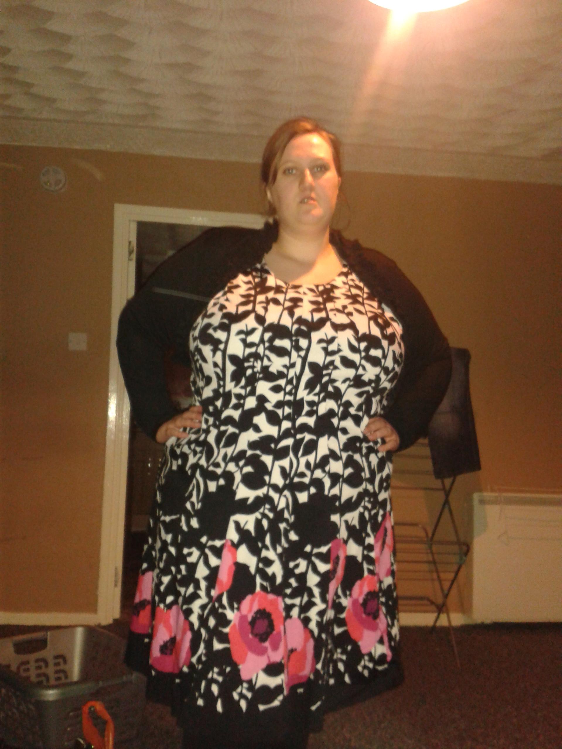 The pictures below are taken today. One with the same size 28 dress on as above for comparrision. I didn't even have to unzip it, just pulled it over my head!! (Excuse the face I'm pulling hubby was taking ages to press the button lol). Second pic is the full new size 22 outfit that I bought today. 3rd and 4th pics are the size 22 top and 5th and 6th pics are the size 18 top.