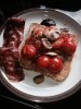 Breakfast was eggy bread (not sweet) with grilled cherry tomatoes, mushrooms and turkey rashers, plus 1tsp brown sauce so that is half my HEB for the bread and prob 1/2 syn for the brown sauce (should be 1 syn per tablespoon but I only had a teaspoon).