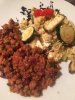 D Mexican veg with quorn pieces and halloumi hea x2. Broccoli, peppers, sugar snap peas, asparagus with roasted sweet potato. Lightest Mayo (1)