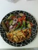 Dinner: chicken mini fillets in chilli, smoked paprika and garlic with balsamic spiked red onion and red pepper, grilled mushrooms and baby gem lettuce!!