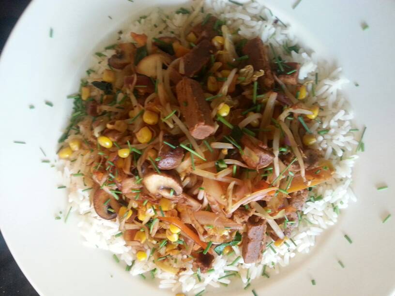 9b. Salad 2: chicken, rice synned, red pepper, mushrooms, salad leaves, onions