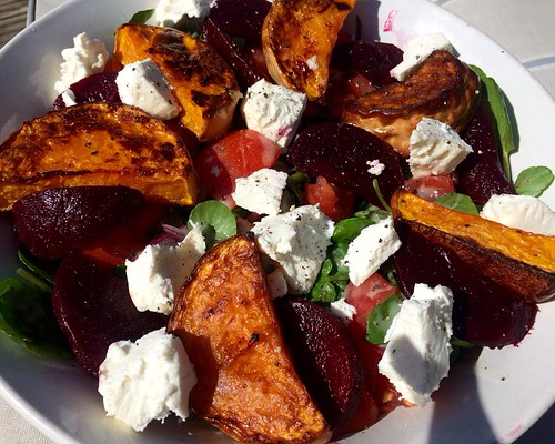 Lunch - Roasted BNS, beetroot and watercress salad with goats cheese