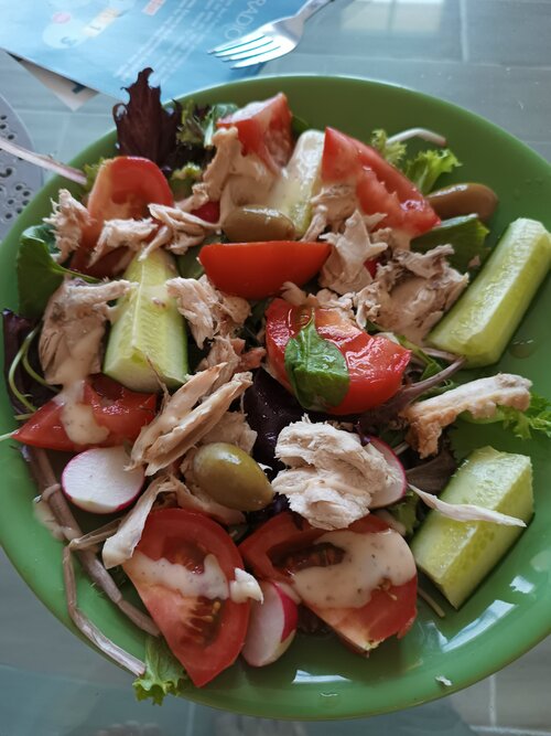 L - Quiche & celeriac salad, ox tongue in gravy & green beans, yogurt