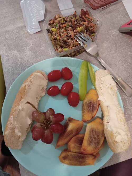 B - Cottage cheese, banana, apple and prunes with sprinkle of seeds